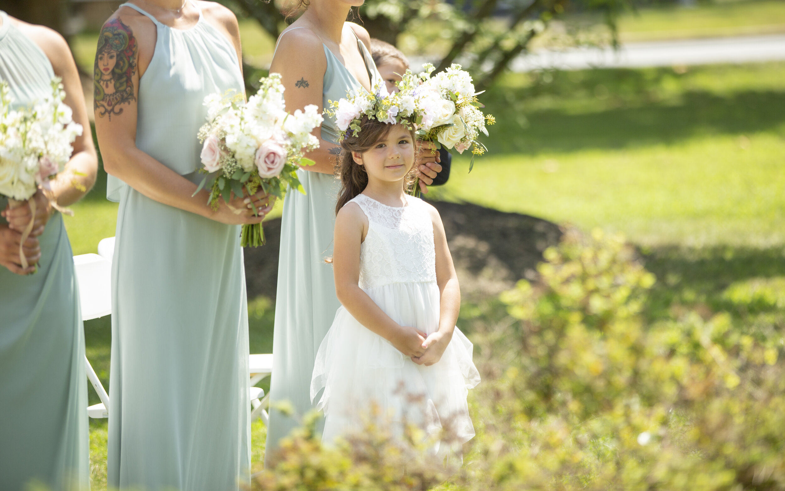 They were blessed with a beautiful day. The weather was beautiful, the sun was out. They got dressed with closest of people by their side.