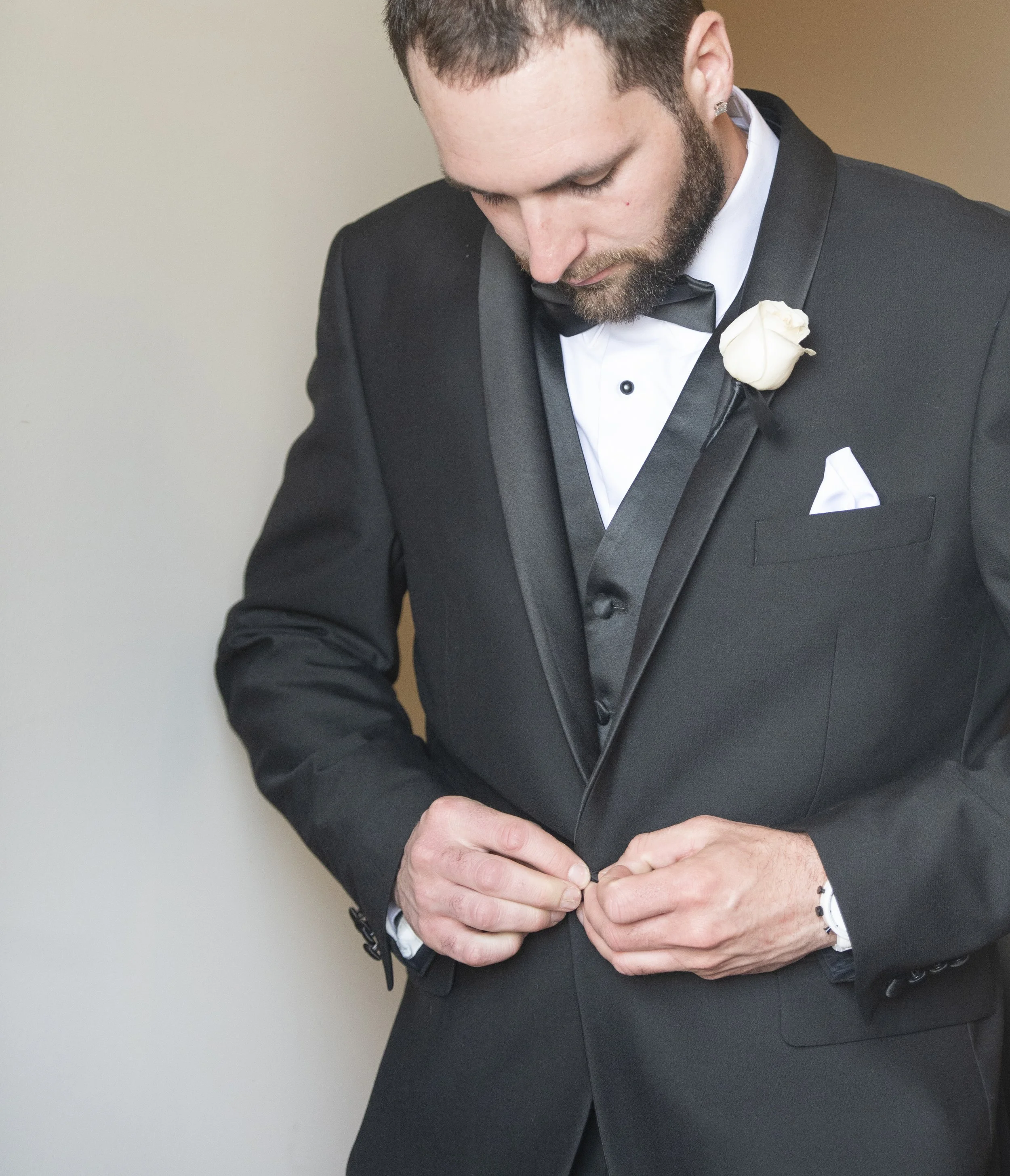 Brittany wore the most beautiful princess-like dress with thin straps. Dylan looked super sharp in his black tux complete with a bow tie. Brittanys flowers were classic & beautiful- such a spring vibe.